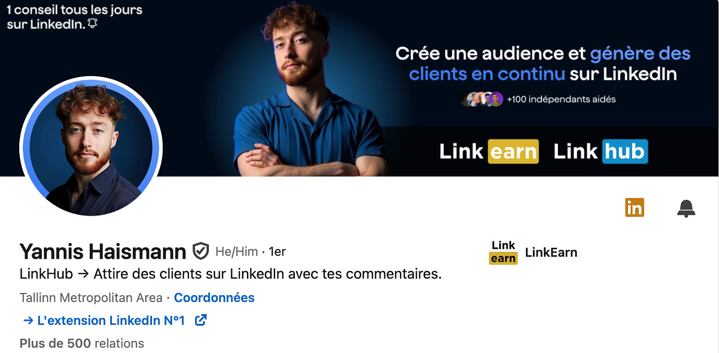 Yannis concentre 100% de son acquisition sur LinkedIn.
