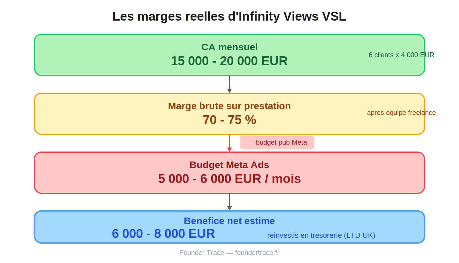 - Infinity Views (offre tunnel complet) : 15 000 à 20 000€/mois de CA